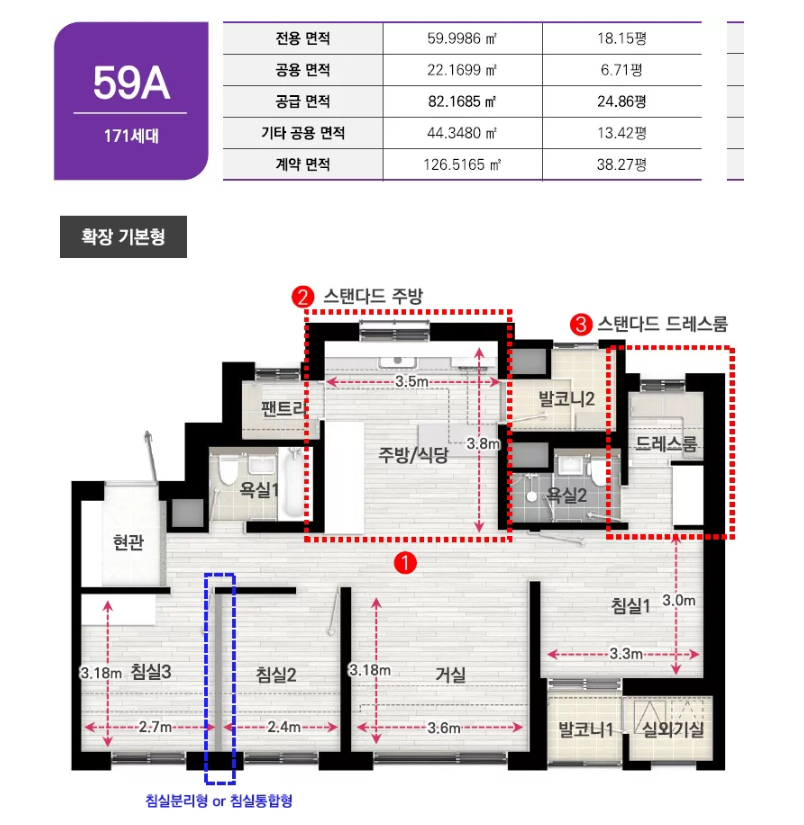• 평형별 구성: * 59㎡ (A/B 타입): 1~2인 가구 및 신혼부부 특화