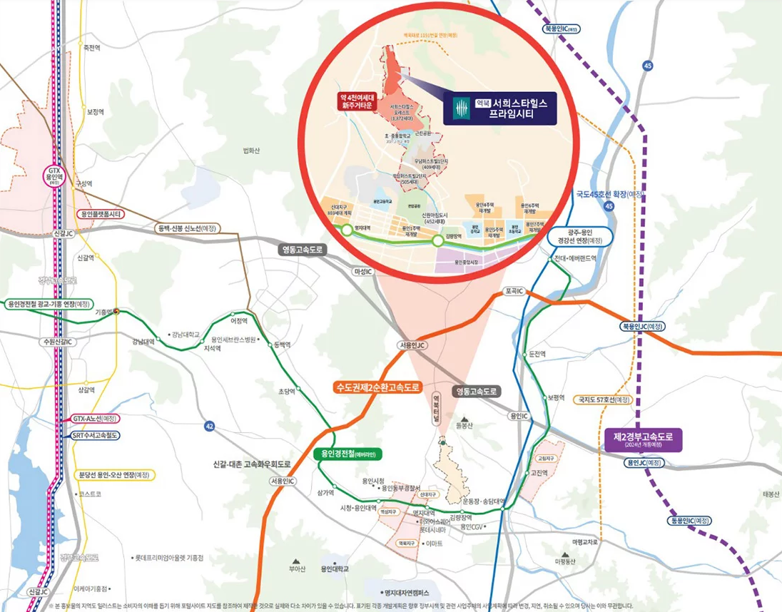 특히 용인역을 지나는 GTX-A 노선이 개통되면 강남역까지 20분 내외로 접근이 가능해지며, 이는 처인구 전반의 주택 가격을 재평가(Re-rating)하게 만드는 강력한 호재입니다. 역북 서희 2차는 이러한 교통 혁명의 간접적 수혜권 내에 위치하며, 서울 생활권을 공유하는 경기 남부의 핵심 주거지로 거듭날 것입니다.