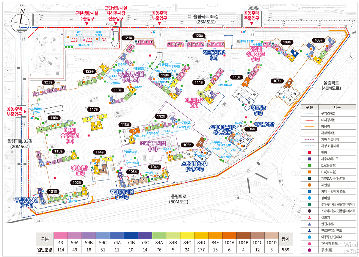 •  상세 동 배치와 평면 타입을 통해 각 세대의 개별적 가치를 읽어낼 수 있습니다. 18개에 달하는 다양한 혁신 평면 설계(43㎡~104㎡)는 자산가들의 세분화된 라이프스타일을 완벽하게 투영하고 있습니다.